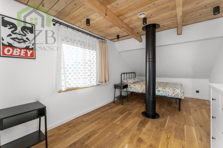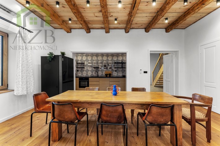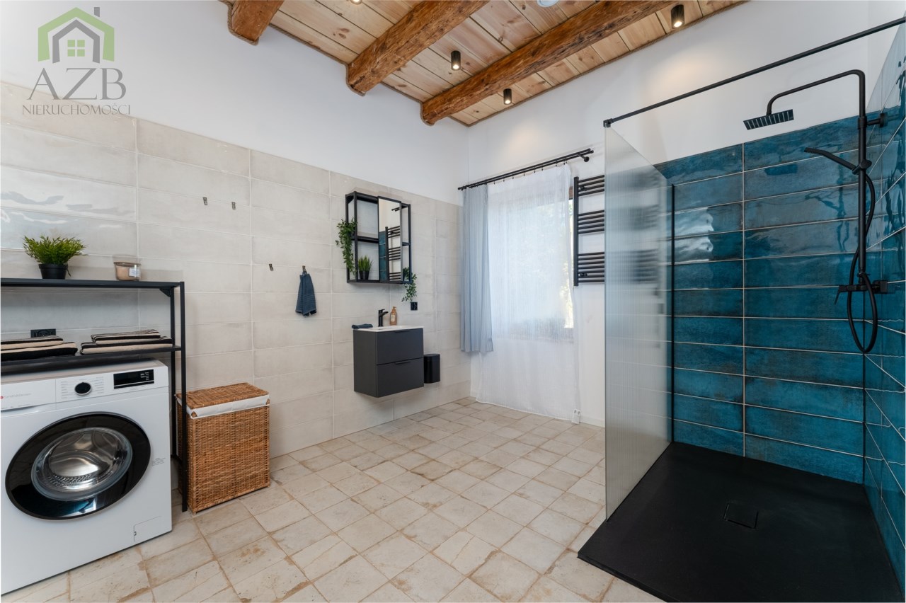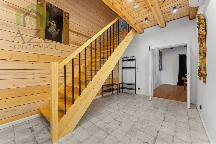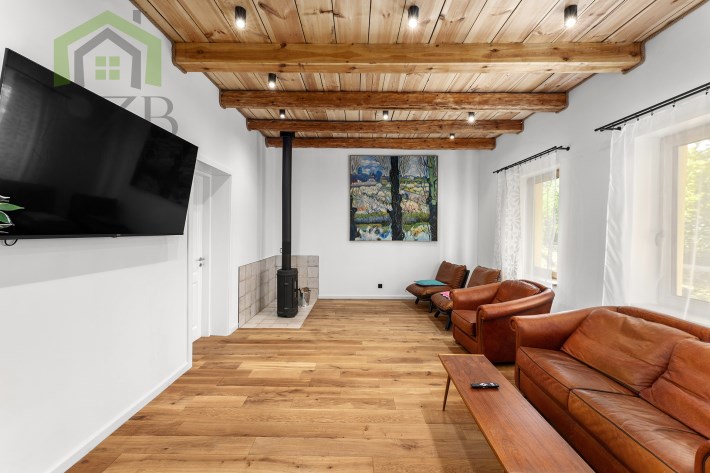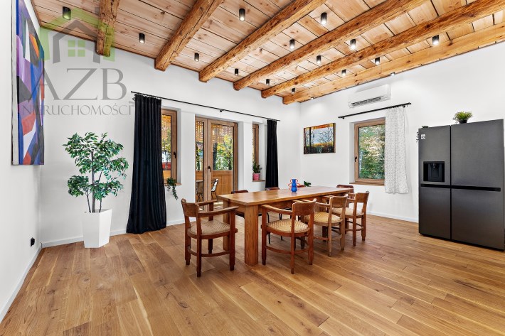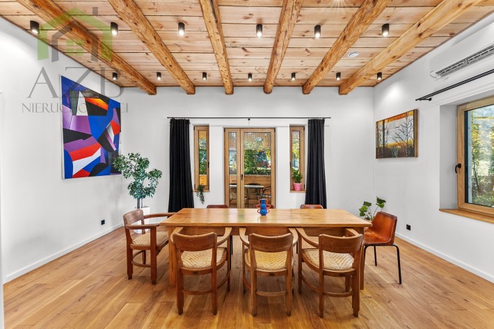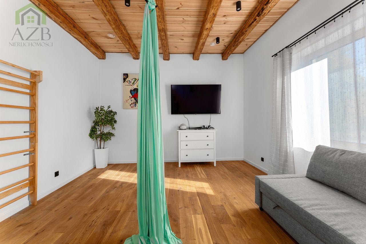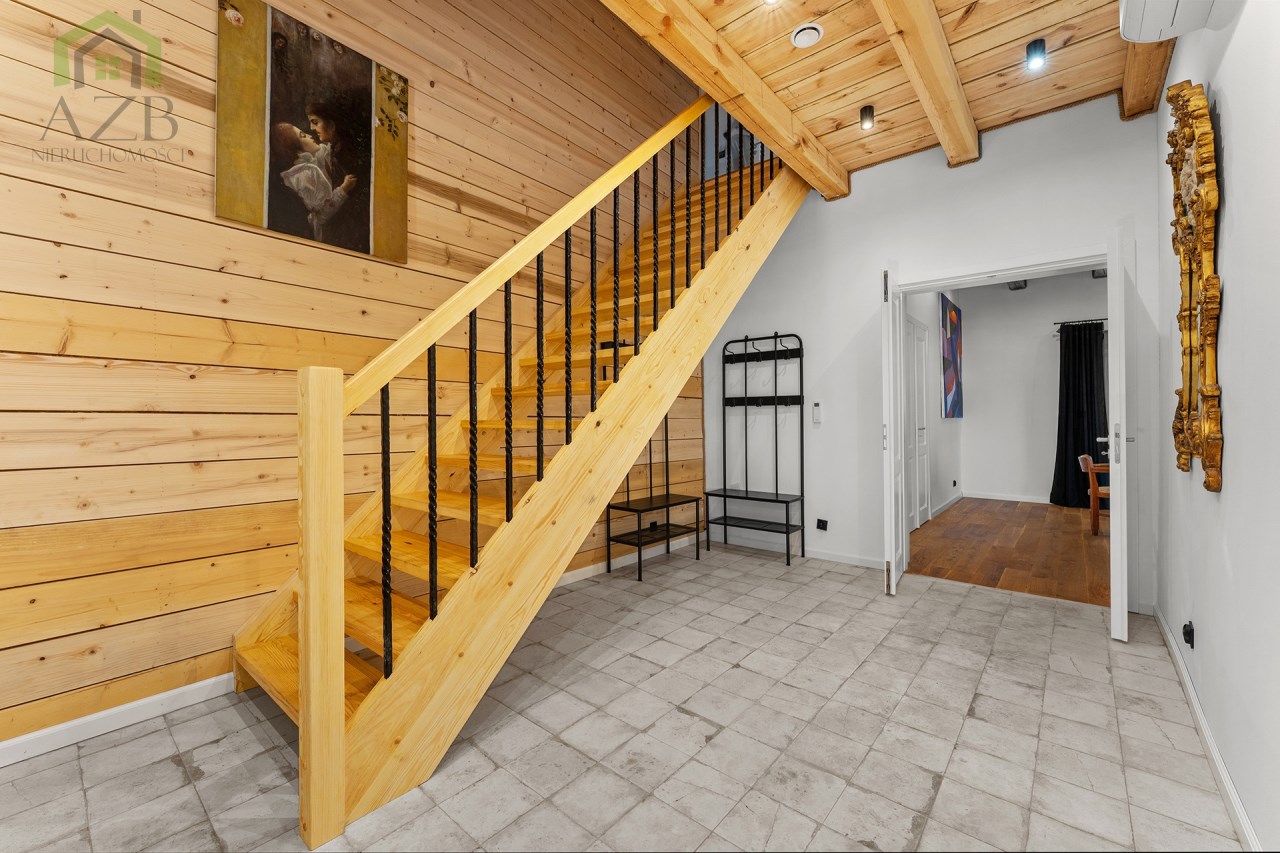 Dom jest bardzo jasny i utrzymany w ciepłej tonacji barw , został gruntownie wyremontowany i zaprojektowany zgodnie z projektem jaki stworzyli obecni właściciele, wymienione zostało praktycznie wszystko , ma ok. 160 m2 powierzchni oraz 45 m2 piwnic do własnej aranżacji ( spa , winiarnia ) , posiada duży parking przed budynkiem. Cały dom jest ogrzewany pompami ciepła nadmuchowymi Panasonic , ogrzewanie podłogowe Danfos w łazience oraz kominek . Drzwi wewnętrzne na zamówienie drewniane , i okna nowe drewniane 3 szybowe , na podłogach drewno dębowe , w budynku jest zastosowana rekuperacja a cały budynek jest monitorowany.