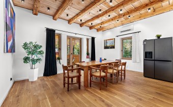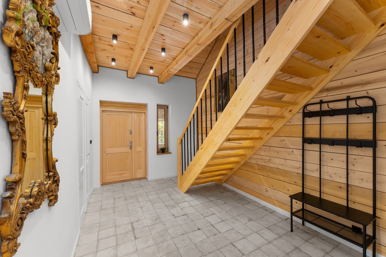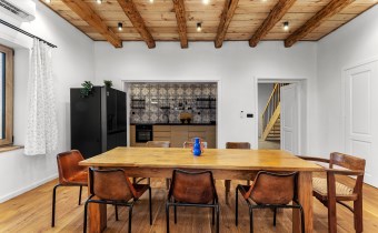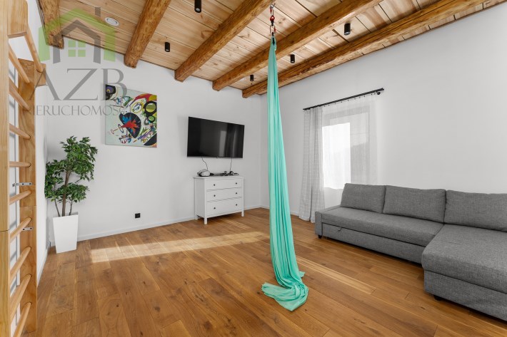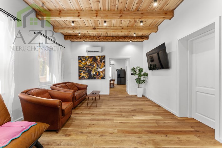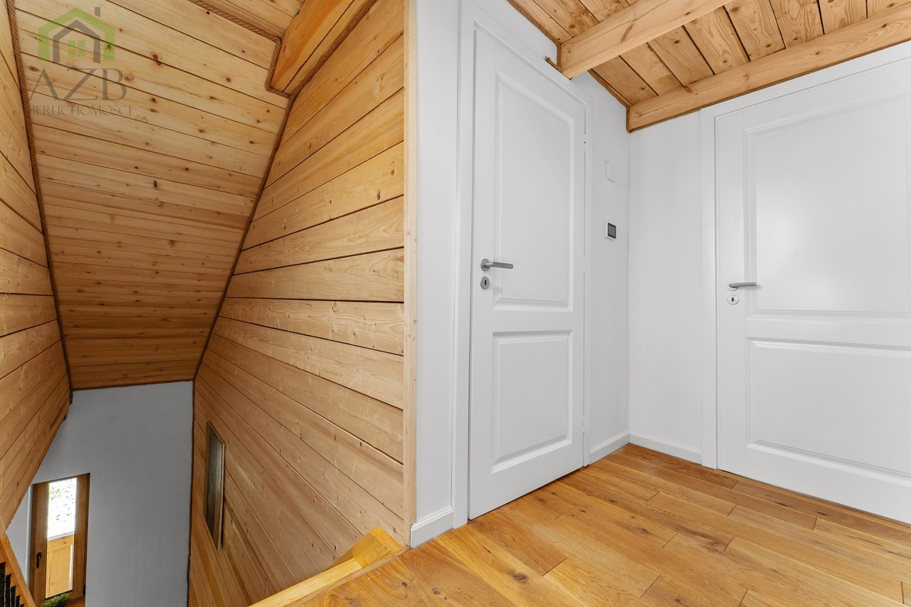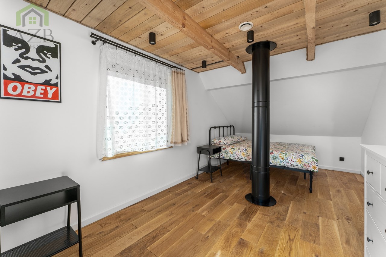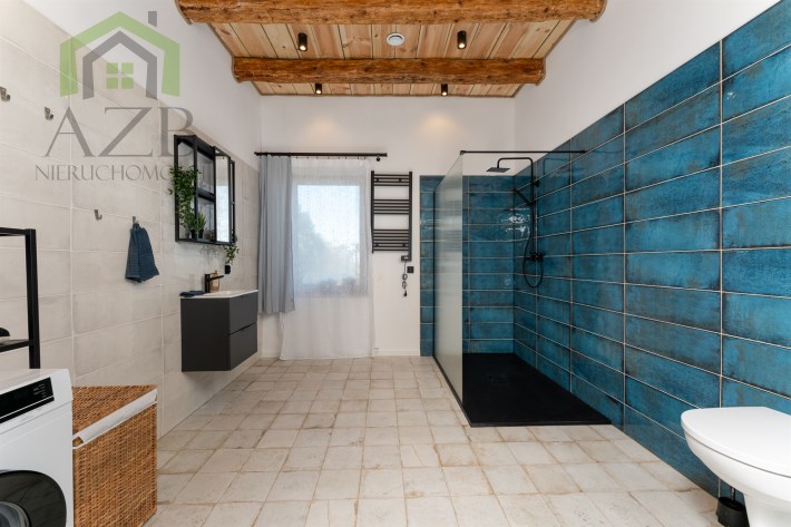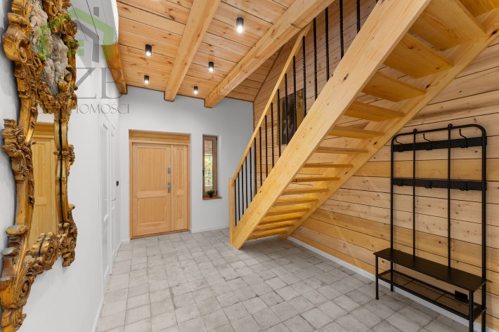 Dom jest bardzo jasny i utrzymany w ciepłej tonacji barw , został gruntownie wyremontowany i zaprojektowany zgodnie z projektem jaki stworzyli obecni właściciele, wymienione zostało praktycznie wszystko , ma ok. 160 m2 powierzchni oraz 45 m2 piwnic do własnej aranżacji ( spa , winiarnia ) , posiada duży parking przed budynkiem. Cały dom jest ogrzewany pompami ciepła nadmuchowymi Panasonic , ogrzewanie podłogowe Danfos w łazience oraz kominek . Drzwi wewnętrzne na zamówienie drewniane , i okna nowe drewniane 3 szybowe , na podłogach drewno dębowe , w budynku jest zastosowana rekuperacja a cały budynek jest monitorowany.
