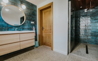Dom ma 257 m2 powierzchni użytkowej ( 307 m2 powierzchni całkowitej ) i znajduje się na dwóch osobnych