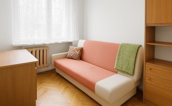 Mieszkanie mieści się na parterze w 4 piętrowym budynku który przeszedł termomodernizacja a klatki schodowe są odmalowane . Ma ponad 47 m2 i składa się z salonu z balkonem podstrony południowej , 2 osobnych sypialni i jasnej kuchni z oknem od strony północnej , łazienki z prysznicem oraz przedpokoju z szafami w zabudowie. Na podłogach parkiet w dobrym stanie. Do mieszkania przynależy piwnica. Mieszkanie nadaje się do odświeżenia lub lekkiego remontu.
