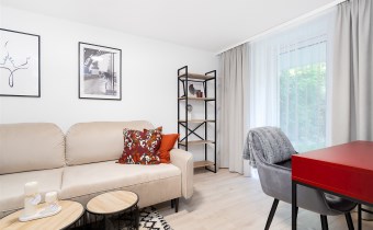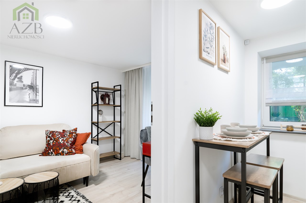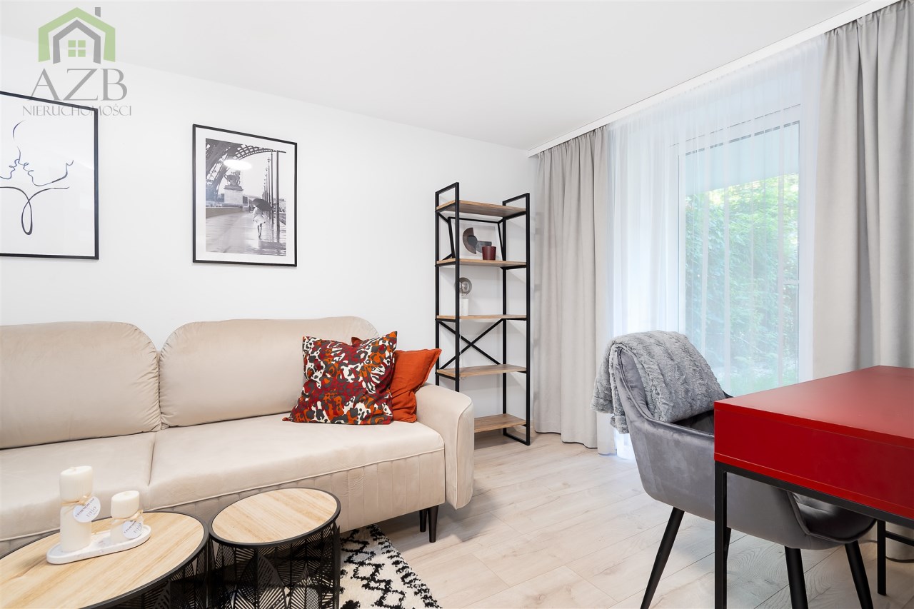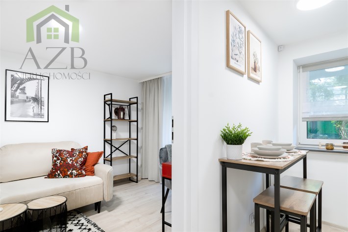 Mieszkanie jest całkowicie nowe i nigdy wcześniej nie zamieszkałe , mieści się w kameralnym budynku po generalnym remoncie. Ma 25 m2 i składa się z osobnej w pełni wyposażonej kuchni , łazienki z prysznicem ,  salonu z rozkładana sofą i wyjściem na duży ogródek . Zostało ślicznie , ciepło i kompaktowo zaprojektowane tak żeby żyło się w nim wygodnie przez znana krakowską pracownie architektoniczną.