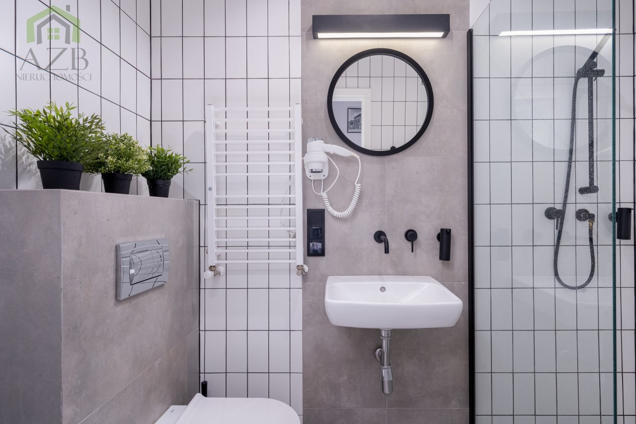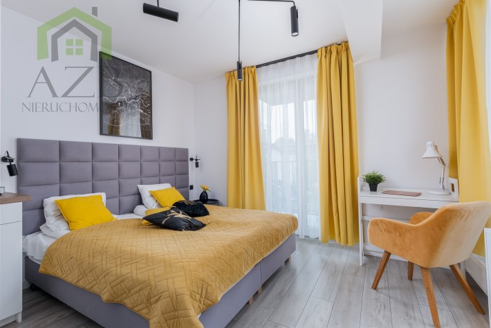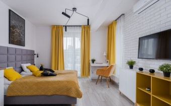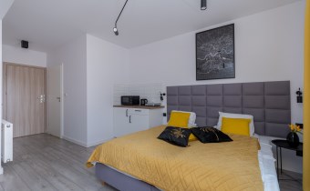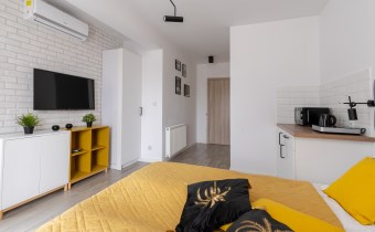 Mieszkanie ma 25m2 powierzchni i składa się z przedpokoju , pokoju z balkonem oraz łazienki z prysznicem. Zostało bardzo ładnie i ciekawie zaprojektowane , na niedużej powierzchni znalazło się wszystko co potrzebne do życia codziennego ( szafy , biurko , aneksik kuchenny z lodówką , mikrofalą , płytą indykcyjną ) , dużym plusem jest balkon który optycznie powiększa mieszkanie i daje możliwość relaksu oraz klimatyzacja która w gorące dni zapewni mieszkańcom ochłodzenie. Mieszkanie idealnie nadaje się dla jednej pracującej lub studiującej osoby. Istnieje możliwość wynajęcia garażu w cenie 350 PLN