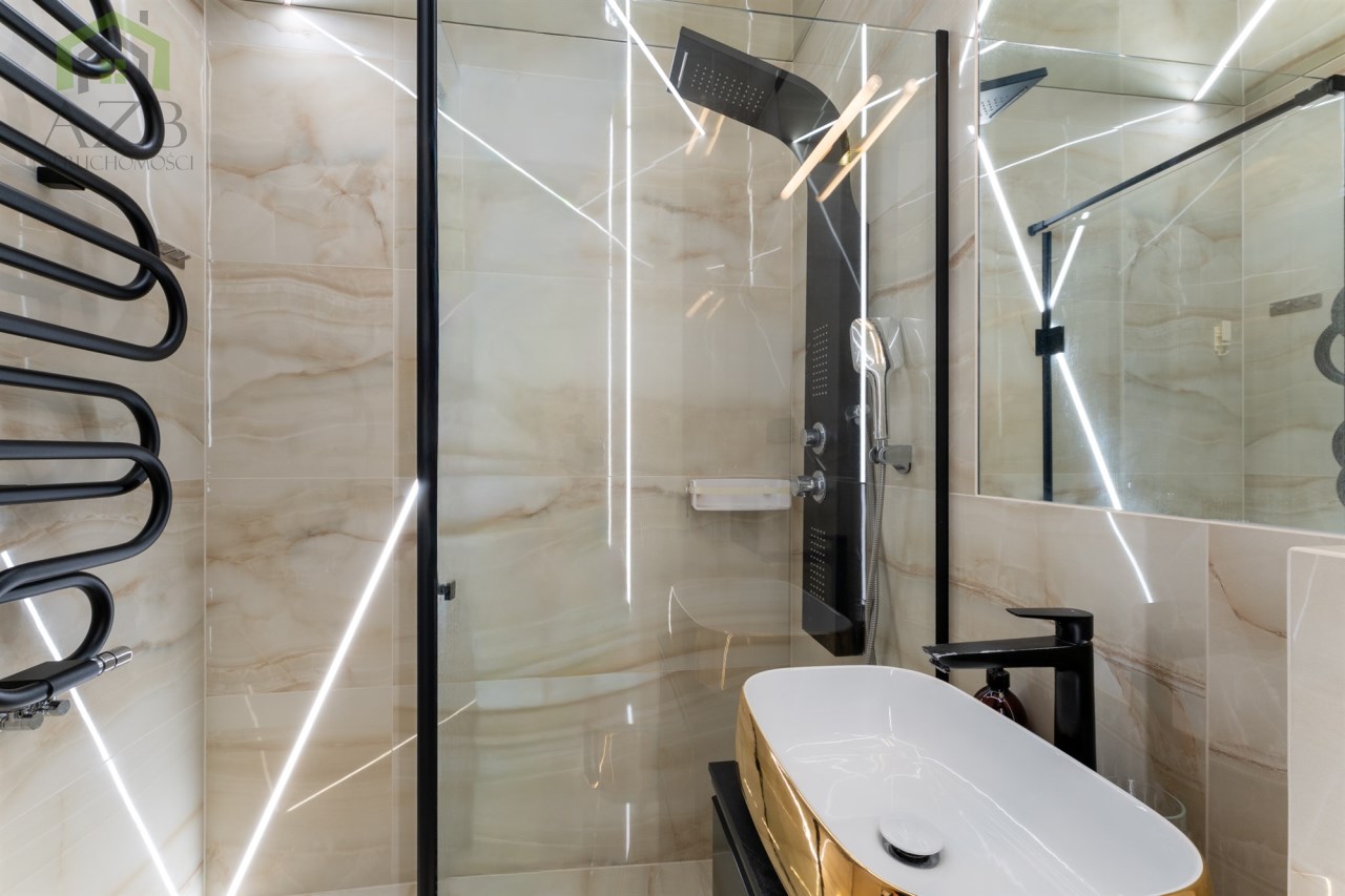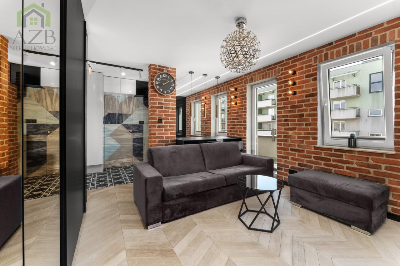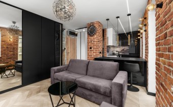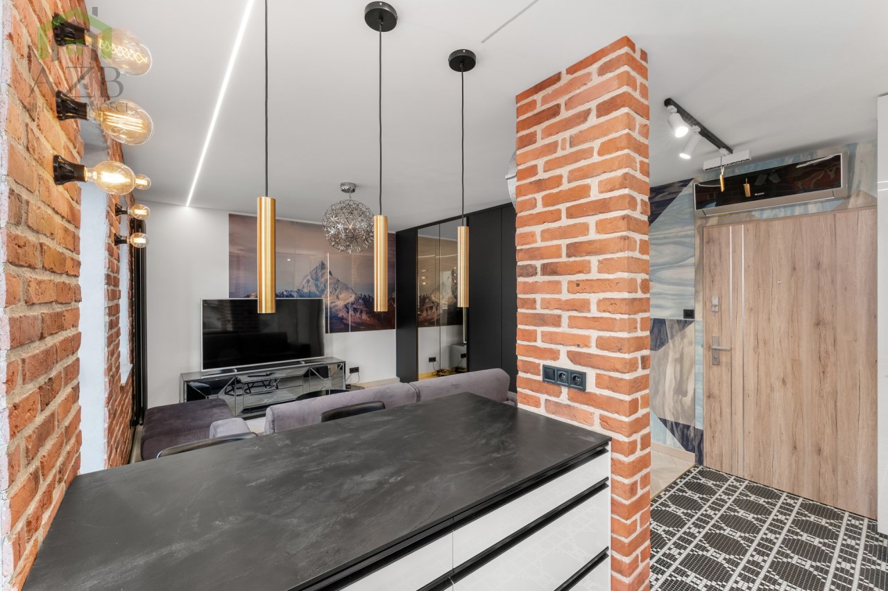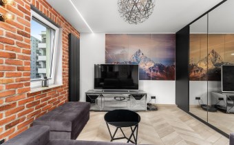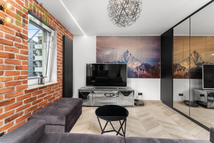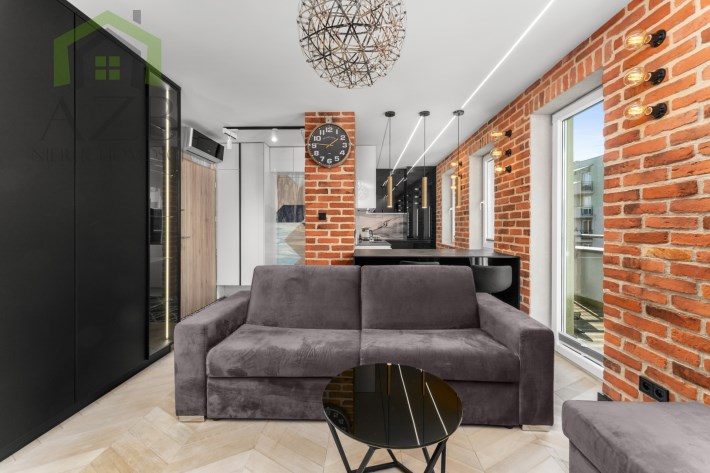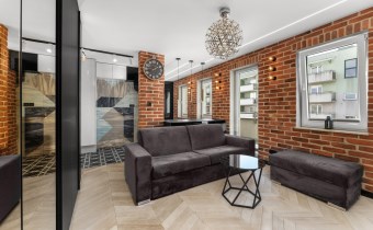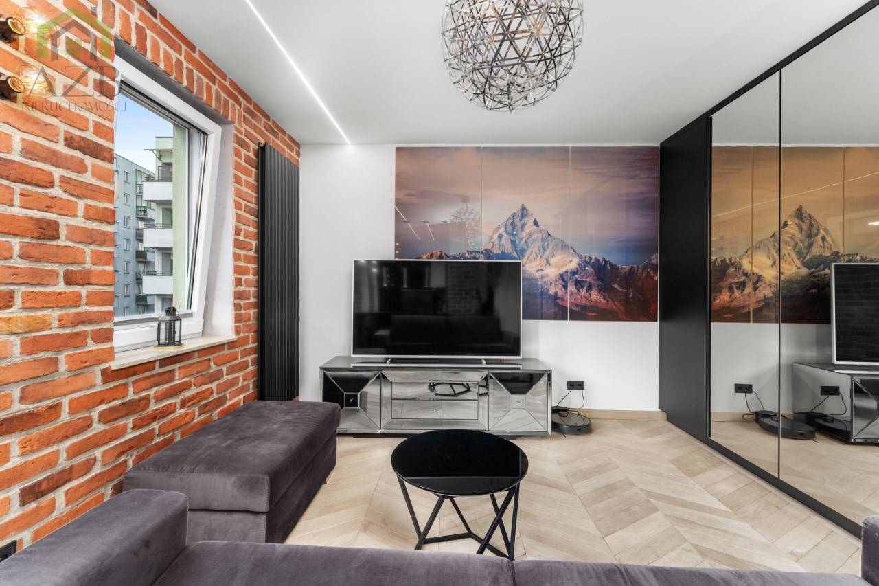 Mieszkanie to luksusowe studio wykończone w bardzo wysokim standardzie, zgodnie z projektem architekta znanej krakowskiej pracowni architektonicznej , z przeznaczeniem dla 1 osoby. Ma około 30 m2 i składa się z dużego pokoju z rozkładaną sofą i pojemna szafą w zabudowie oraz wyjściem na balkon , częściowo połączonej wyspą kuchni która jest całkowicie wyposażona oraz przepięknej łazienki z lustrem na suficie które daje niesamowite wrażenie przestrzeni. Mieszkanie ze względu na duża ilość okien jest bardzo jasne ale mimo to znajduje się w nim dużo punktów świetlnych.