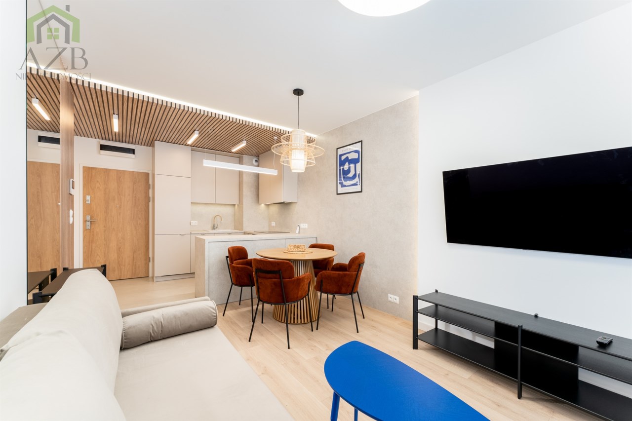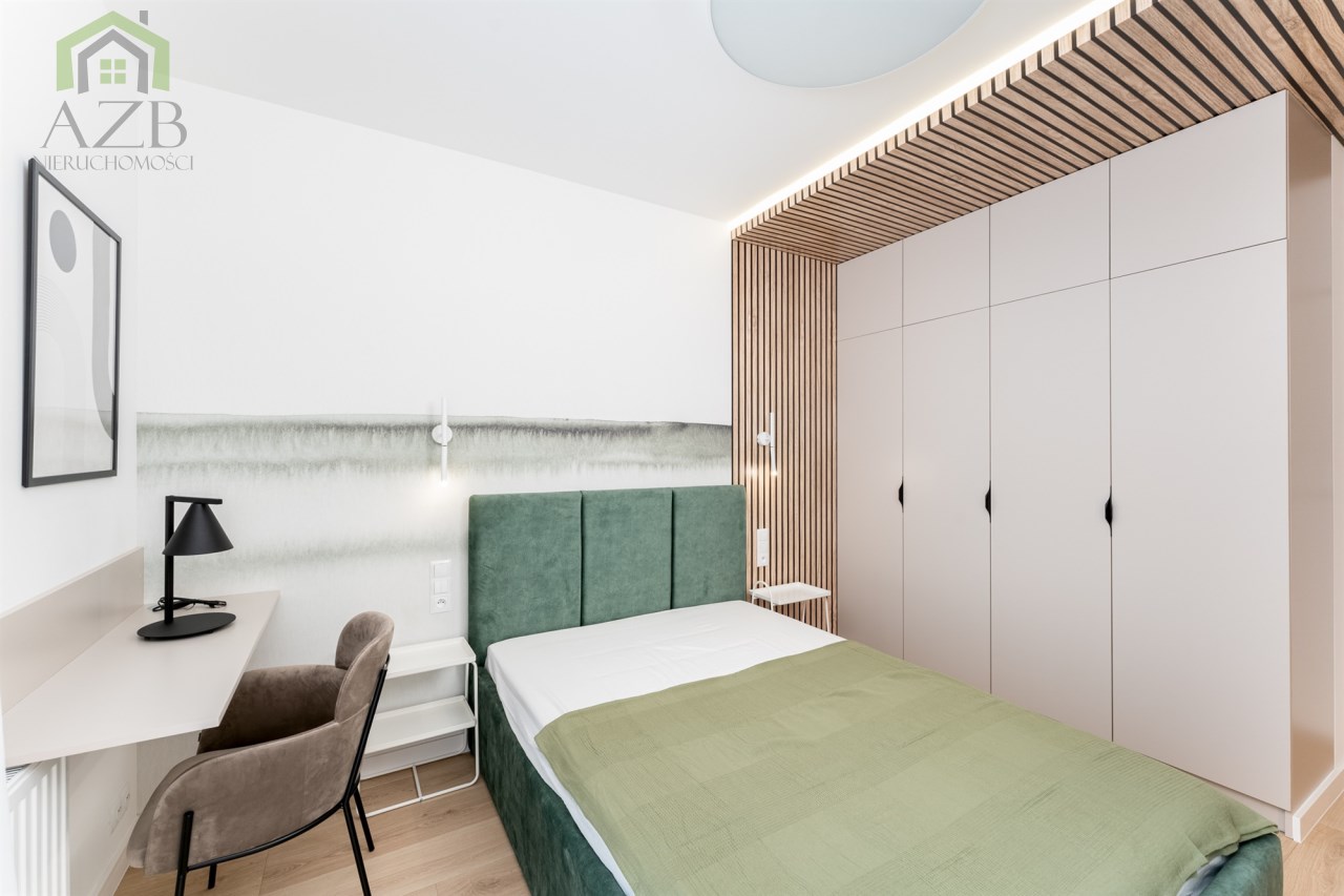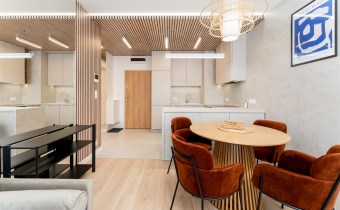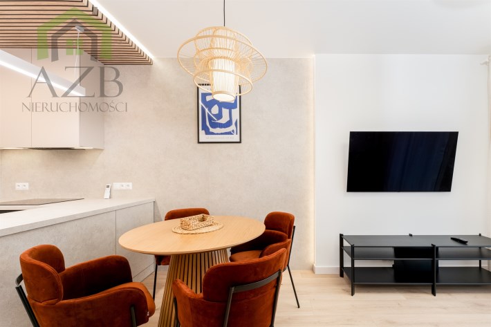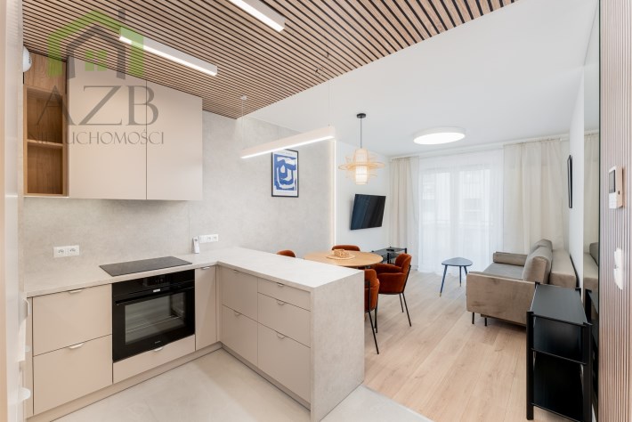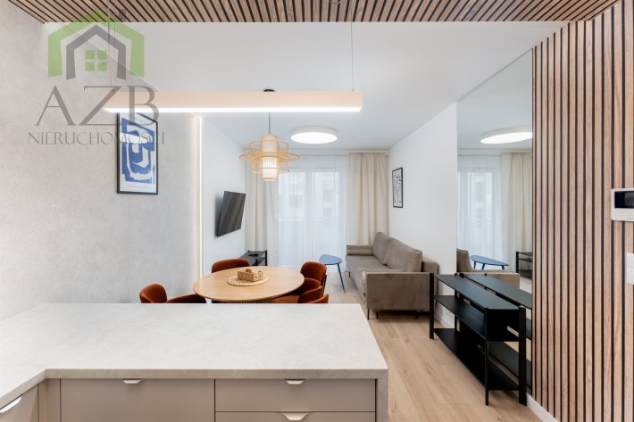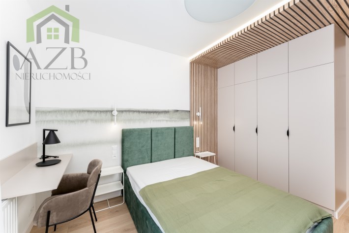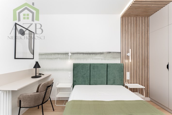 Apartament jest nowy i mieści się na 1 piętrze i na powierzchni około 40 m2 znajduje się przestronna sypialnia z dużym łóżkiem i szafami w zabudowie , salon z kuchnią i jadalnią oraz wyjściem na balkon , przestronna łazienka z prysznicem oraz przedpokój z szafą . Mieszkanie zostało zaprojektowane według projektu znanej krakowskiej firmy architektonicznej i wykończone zgodnie z projektem w wysokim standardzie . Jest kompletnie urządzone i wyposażone w wysokiej jakości sprzęt AGD ( pralko-suszarka , zmywarka , lodówka , piekarnik ) . Apartament jest przestronny i wykończony z dbałością o detale , posiada duże panoramiczne okna od strony południowej co czyni je bardzo jasnym , balkon oraz miejsce postojowe w garażu podziemnym.