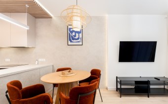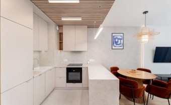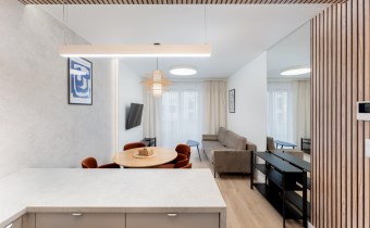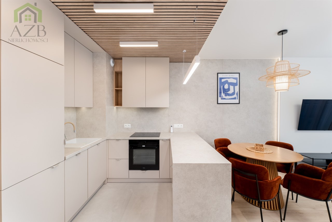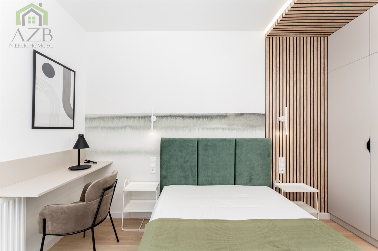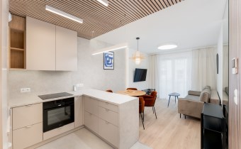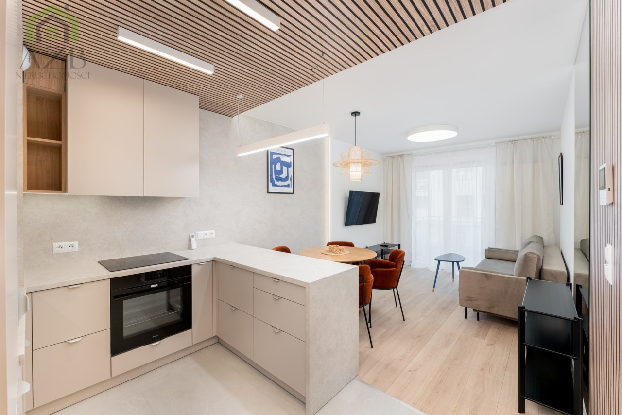 Apartament jest nowy i mieści się na 1 piętrze i na powierzchni około 40 m2 znajduje się przestronna sypialnia z dużym łóżkiem i szafami w zabudowie , salon z kuchnią i jadalnią oraz wyjściem na balkon , przestronna łazienka z prysznicem oraz przedpokój z szafą . Mieszkanie zostało zaprojektowane według projektu znanej krakowskiej firmy architektonicznej i wykończone zgodnie z projektem w wysokim standardzie . Jest kompletnie urządzone i wyposażone w wysokiej jakości sprzęt AGD ( pralko-suszarka , zmywarka , lodówka , piekarnik ) . Apartament jest przestronny i wykończony z dbałością o detale , posiada duże panoramiczne okna od strony południowej co czyni je bardzo jasnym , balkon oraz miejsce postojowe w garażu podziemnym.