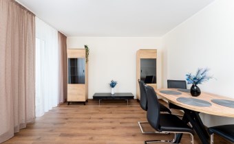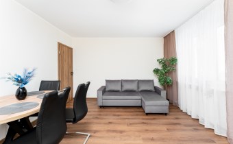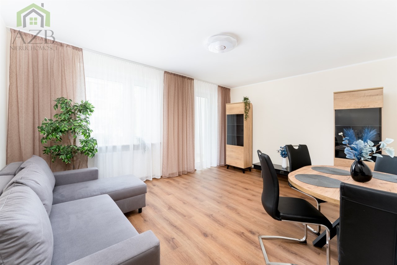 Mieszkanie jest po generalnym remoncie , nowe , nigdy wcześniej nie wynajmowane. Zostało ciepło i przyjemnie a zarazem nowocześnie zaprojektowane , jest dwustronne i dobrze doświetlone . Ma 68 m2 i składa się z : dużego salonu z jadalnią i wyjściem na balkon , dwóch osobnych sypialni - jedna z nich została pusta i zostanie umeblowana pod potrzeby nowych najemców , osobnej jasnej , kompletnie wyposażonej  kuchni , łazienki z dużym prysznicem i pralką , osobnej toalety oraz przedpokoju. Do mieszkania przynależy zewnętrzne miejsce postojowe przy budynku.